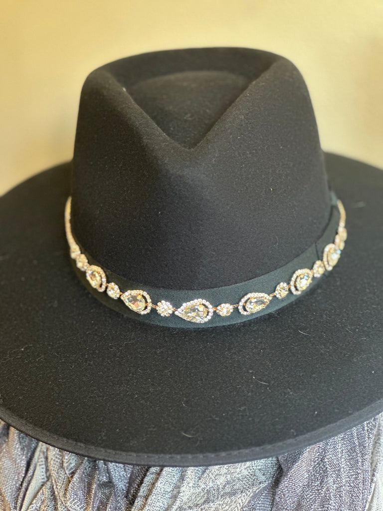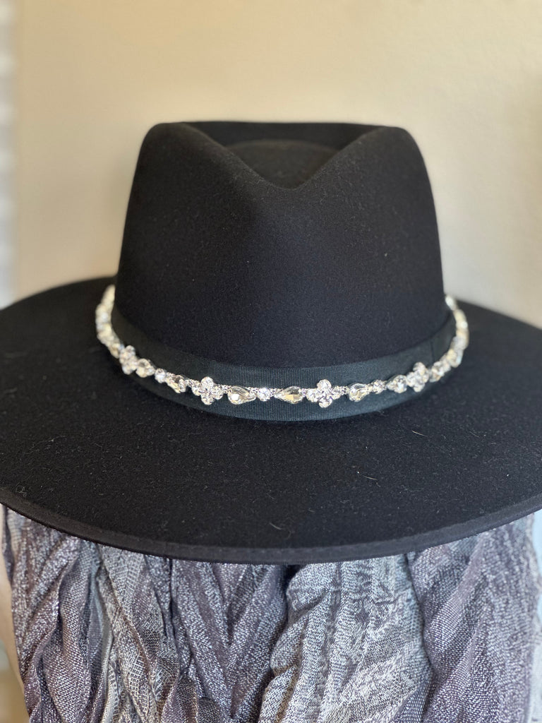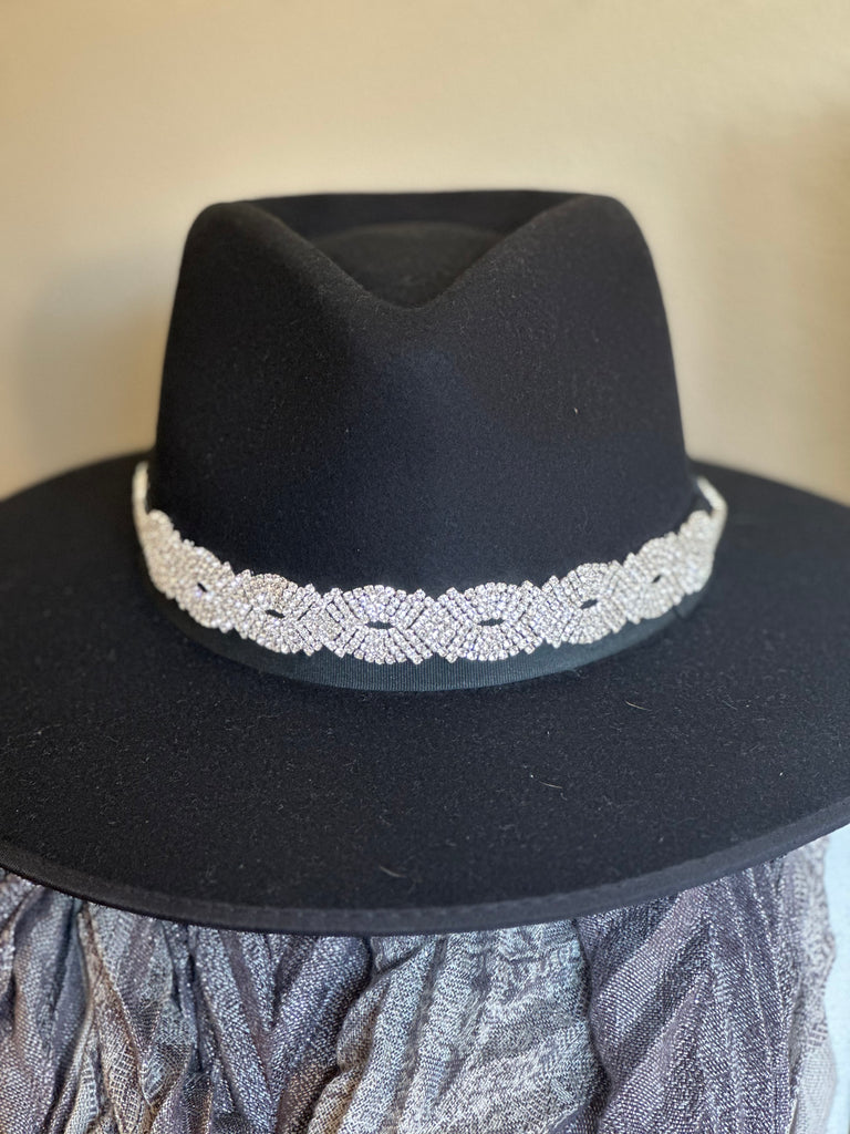 Glam up your hats with these Rhinestone Hat Bands with Leather tie back.