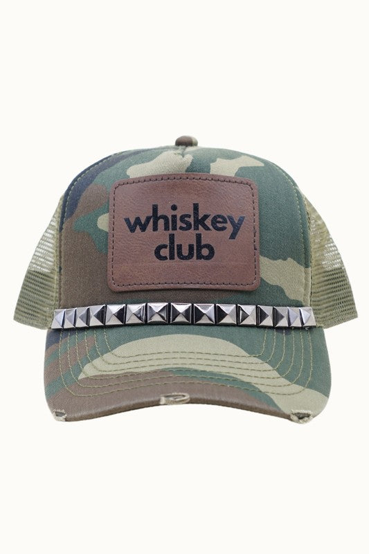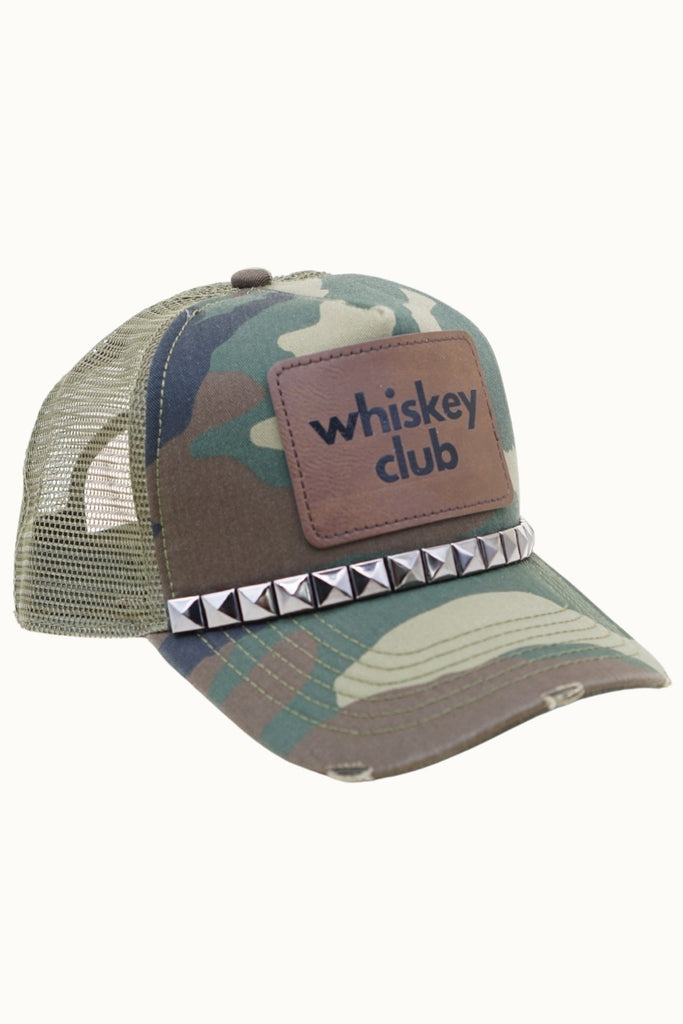 Camo trucker SnapBack hat with leatherette and glitz detail.